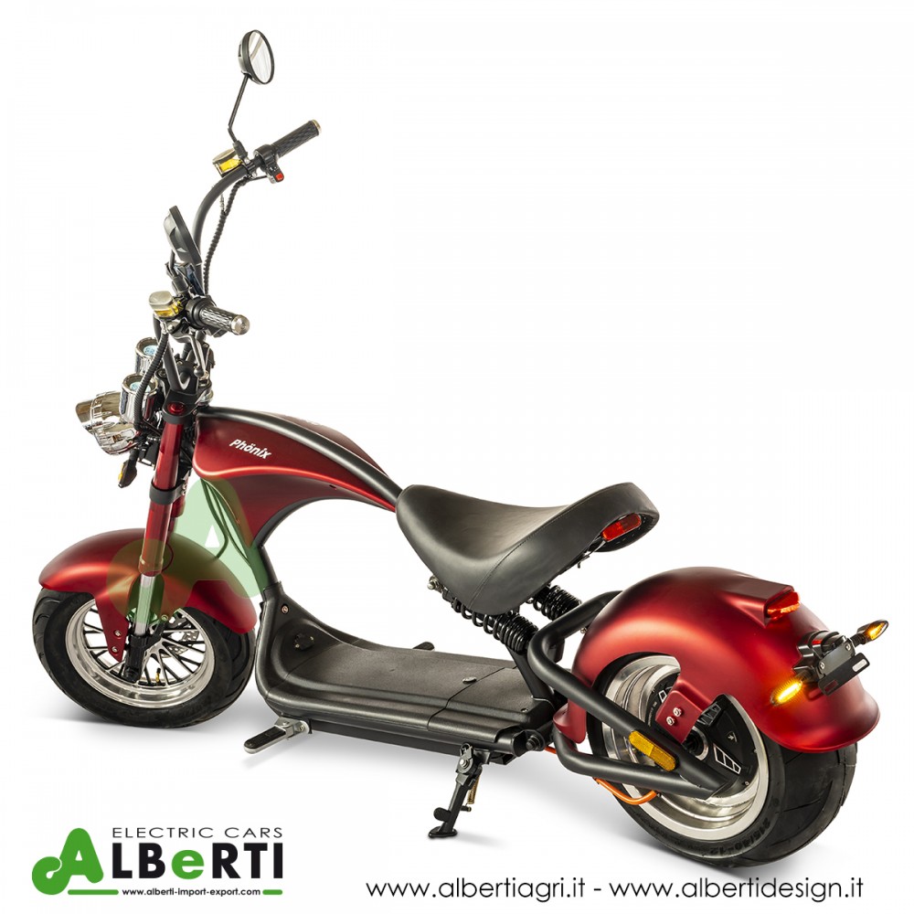 Il display digitale del tachimetro, l’illuminazione a LED e l’antifurto integrato rendono ogni viaggio ancora più confortevole. Gli pneumatici da 12 pol- lici assicurano una guida dinamica e agile, mentre i freni a disco idraulici assicurano un controllo e una sicurezza ottimali su strada. E con eleganti opzioni di colore come il rosso opaco, l’arancione o il verde diamante, la tua Alberti Phoenix si distinguerà dalla massa.